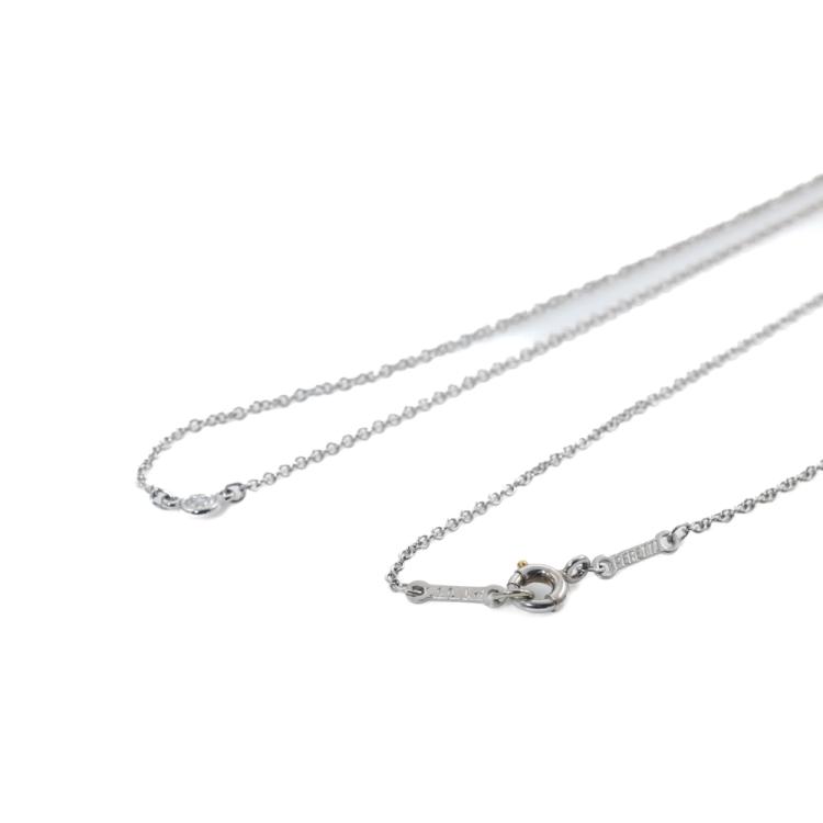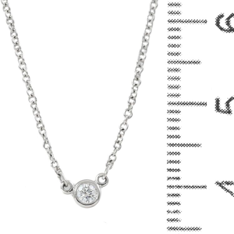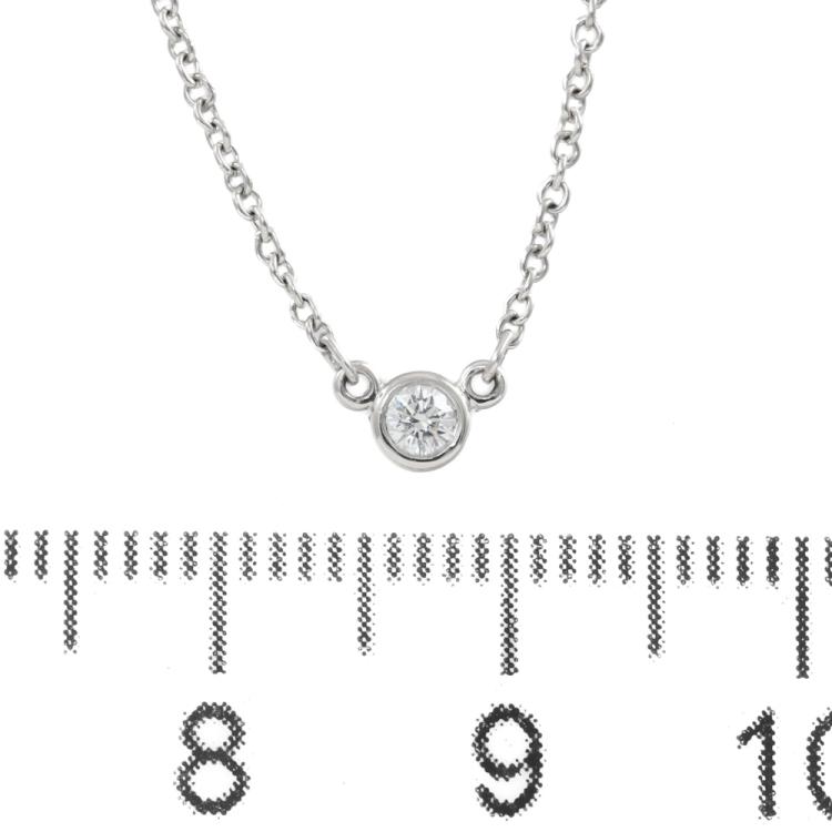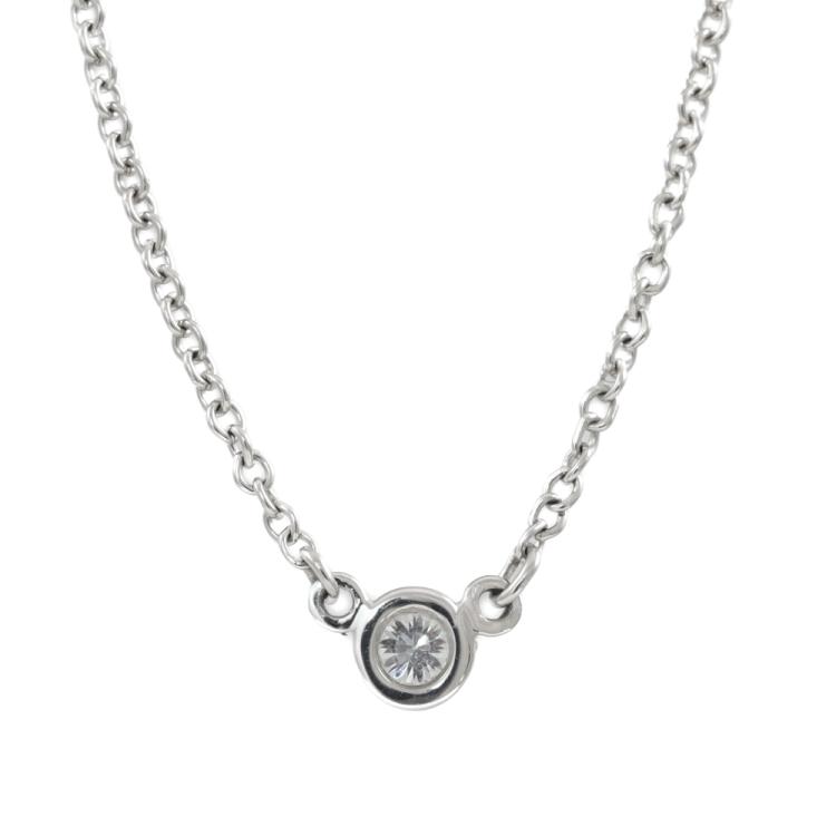 Tiffany & Co Elsa Peretti Diamonds by the Yard single Diamond pendant with a round Natural Diamond of approximately 0.08ct. Platinum 950 with Tiffany & Co Platinum 950 attached chain. Length: 41.5cm. Weight: 2.5g. (Pre-owned)