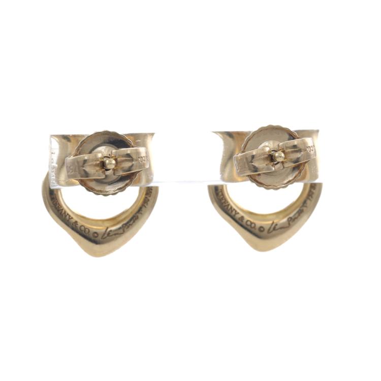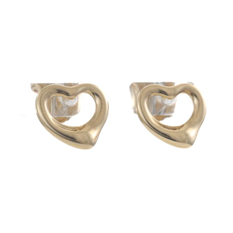 Tiffany & Co Elsa Peretti Open Heart earrings. 18ct yellow gold with 18ct yellow gold Tiffany & Co backs. Width: 10.7mm x 9.7mm. Weight: 2.7g. With Tiffany & Co box. (Pre-owned)