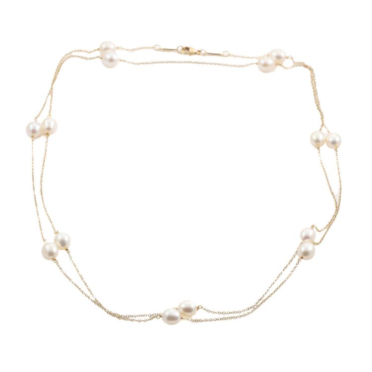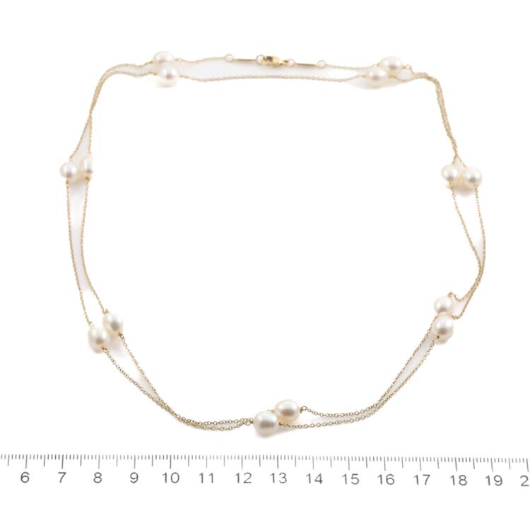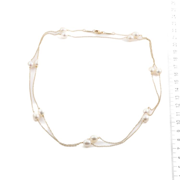 Tiffany & Co Elsa Peretti Pearl by The Yard necklace with 14 Cultured Pearls of approximately 6.5mm. 18ct yellow gold. Length: 95cm. Weight: 10.3g. (Pre-owned)