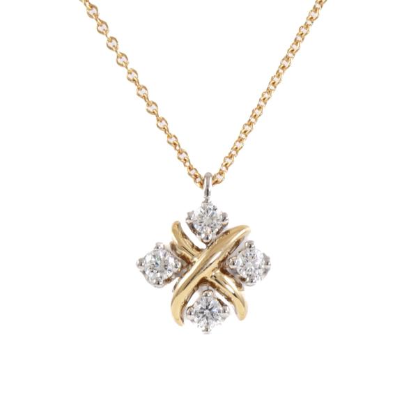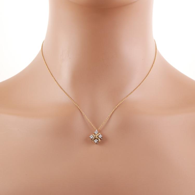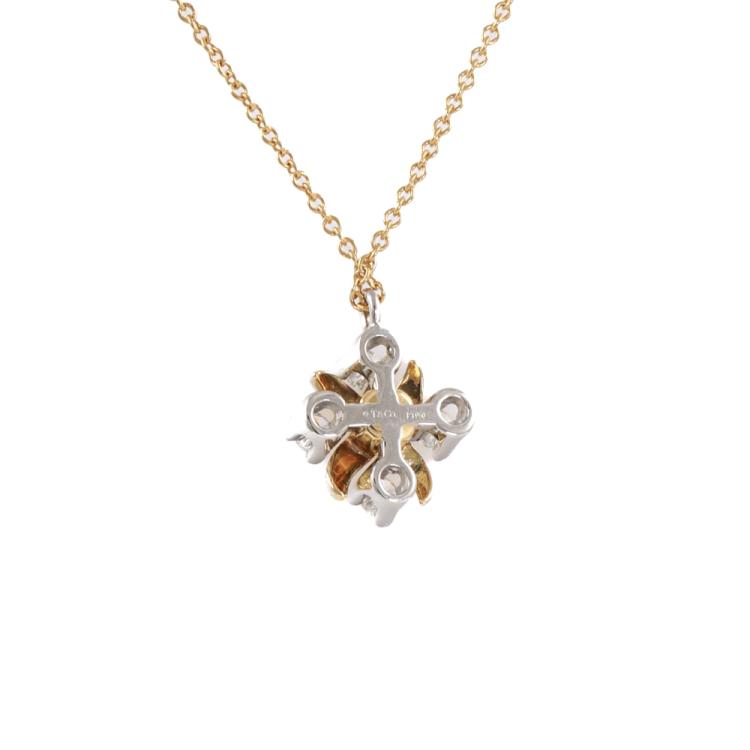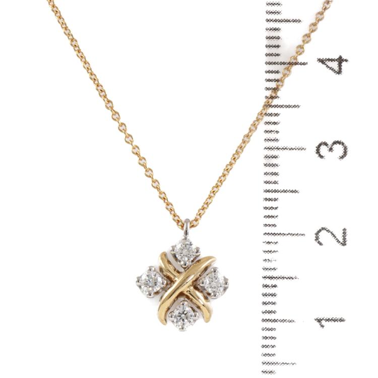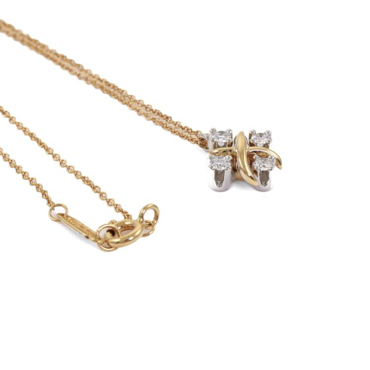 Tiffany & Co. Schlumberger Lynn Pendant with 4 round Natural Diamonds totalling 0.21ct. Platinum - 950 with 40cm 18ct yellow gold chain. Weight: 3.8g. With Certificate #419763. (Pre-owned)