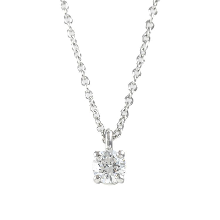 Tiffany & Co. Solitaire Diamond pendant with a round brilliant cut Natural Diamond of approximately 0.17ct. Platinum 950 with 40.5cm platinum Tiffany & Co. chain. Weight: 2.3g. With Tiffany & Co box. (Pre-owned)
