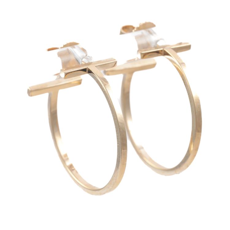 Tiffany & Co T Hoop Earrings, medium size. 18ct rose gold. Diameter: 22mm. Weight: 4.7g. With Tiffany & Co box and pouch. (Pre-owned)