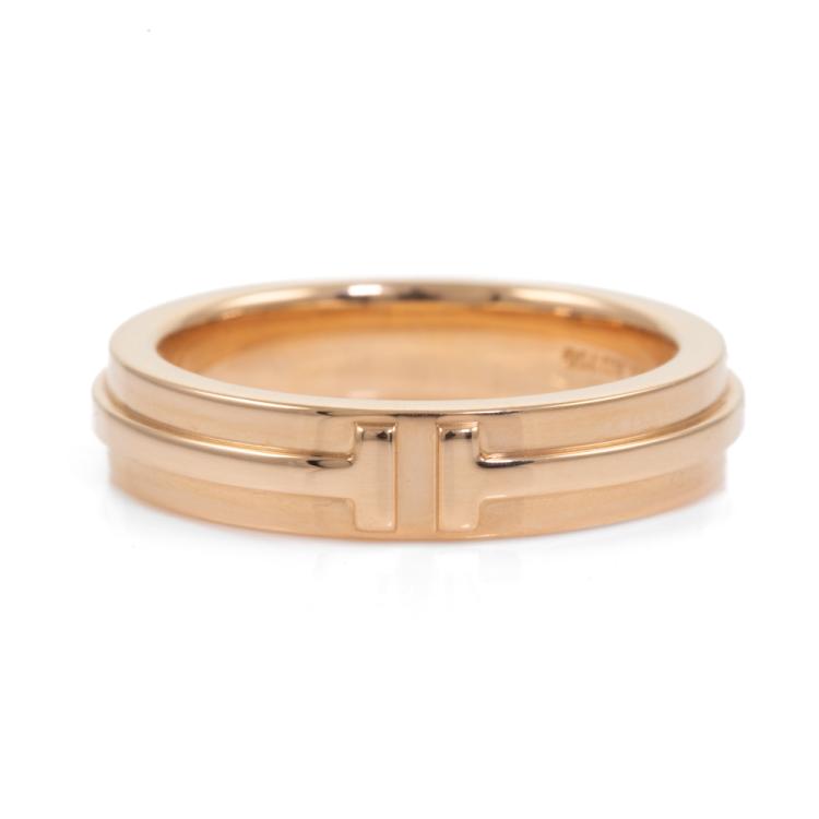 Tiffany & Co. Tiffany T Narrow ring. 18ct rose gold. Ring size N 3/4 - ring resizing is not recommended. Width: 4.5mm. Weight: 8.7g. With Tiffany & Co. box. (Pre-owned)