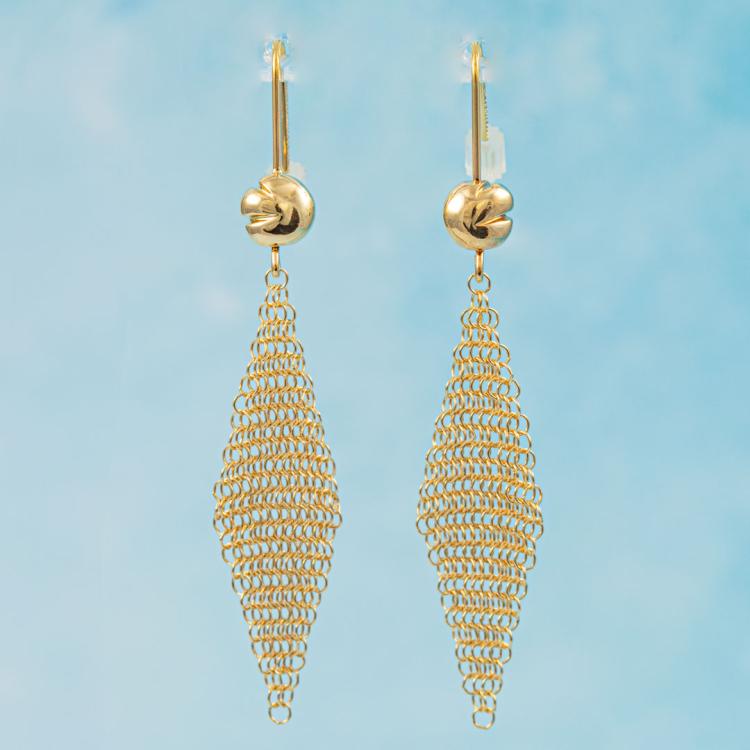 Tiffany Elsa Peretti Mesh Earrings. 18ct yellow gold. Drop length: 5cm. Circa: 1981. Weight: 3.3g. With Tiffany & Co Pouch. (Pre-owned)