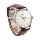 Tissot Heritage Visodate stainless steel automatic mens watch. Silver dial, day & date, case diameter: 40mm, adjustable max wrist size: 19.5cm, Swiss made. Ref# T019430B. With Tissot brown leather strap and clasp. With Certificate of Authenticity. 3 month FSA warranty (Pre-owned)