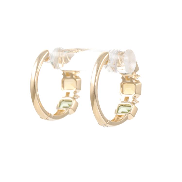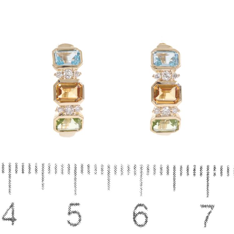 Topaz, Citrine, Peridot and Diamond earrings with emerald cut Natural Blue Topaz totalling 0.40ct, emerald cut Natural Citrine totalling 0.34ct, emerald cut Natural Peridot totalling 0.42ct and round Natural totalling 0.10ct 14ct yellow gold. Weight: 2.4g (New)