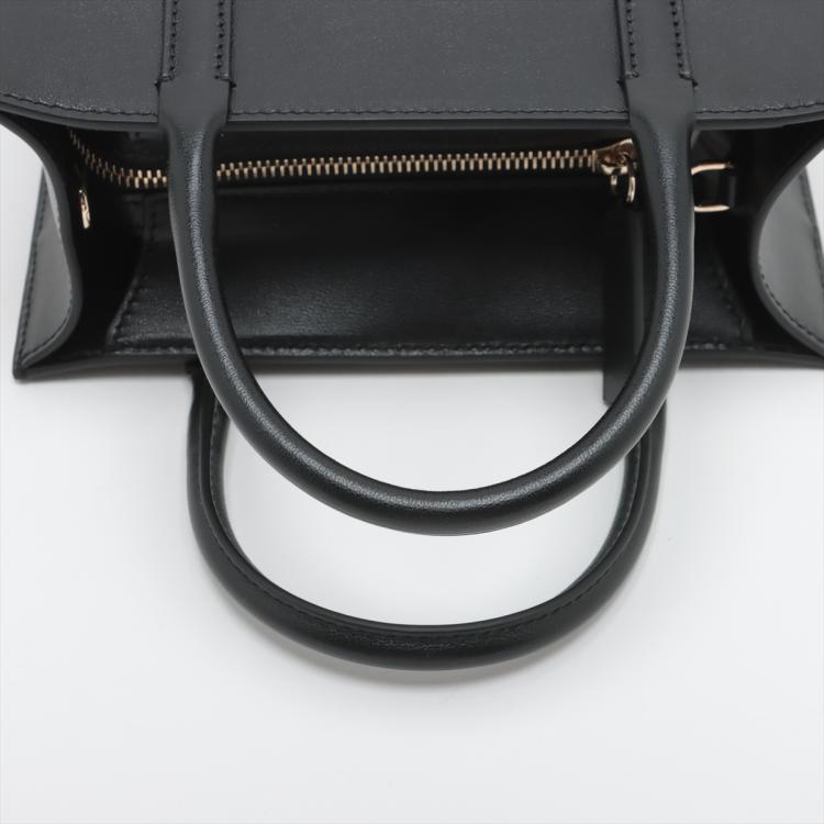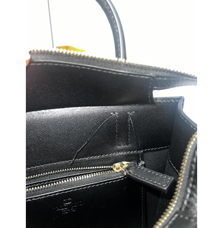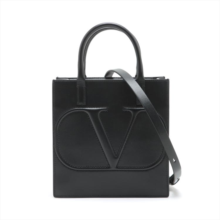 Valentino Garavani small VLogo Walk handbag in black calfskin leather. Featuring light gold-toned hardware, embossed "V" logo at front, and dual rolled top handles. The zipper closure opens to a black textile interior with a zipper pocket. Approximate dimensions: 20cm(L) x 21cm(H) x 9cm(D), handle drop 9cm, adjustable and detachable shoulder strap drop 50cm. Accompanied by Valentino dustbag. With Entrupy Certificate of Authenticity. (Pre-owned)