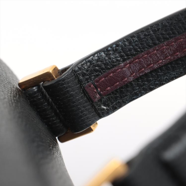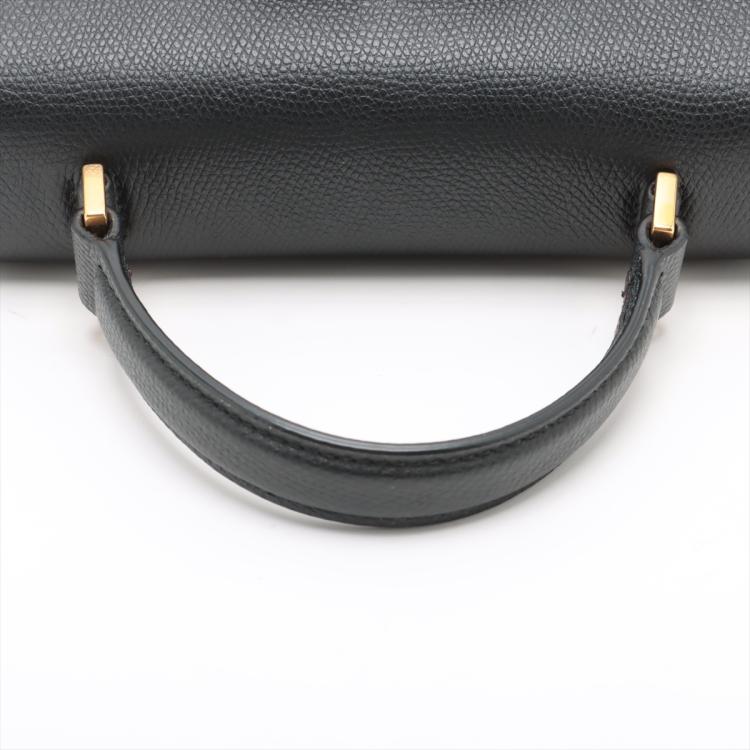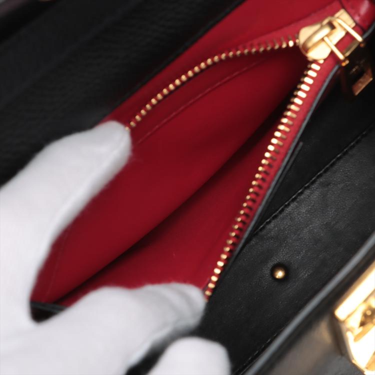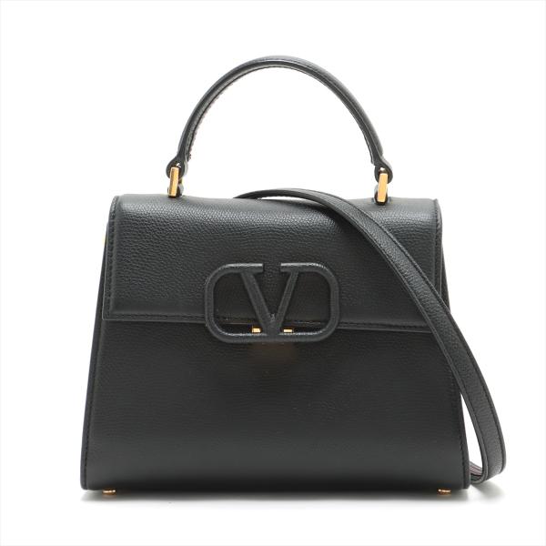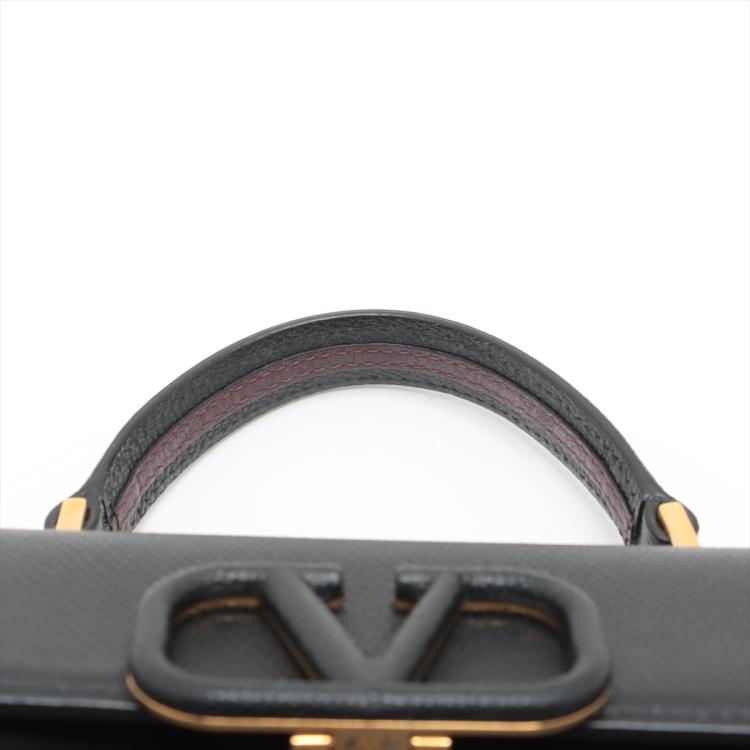 Valentino Garavani VSling Handbag in black calfskin leather. Featuring gold-toned hardware, single flat top handle, and leather wrapper 'V' logo clasp and magnetic closure. The flap opens to a black nappa leather lining interior with a red leather zip pocket. Approximate dimensions: 22cm(Base-L) x 15cm(H) x 10cm(D), handle drop 8cm, shoulder strap with adjustable chain element drop 60cm. With Entrupy Certificate of Authenticity. (Pre-owned)