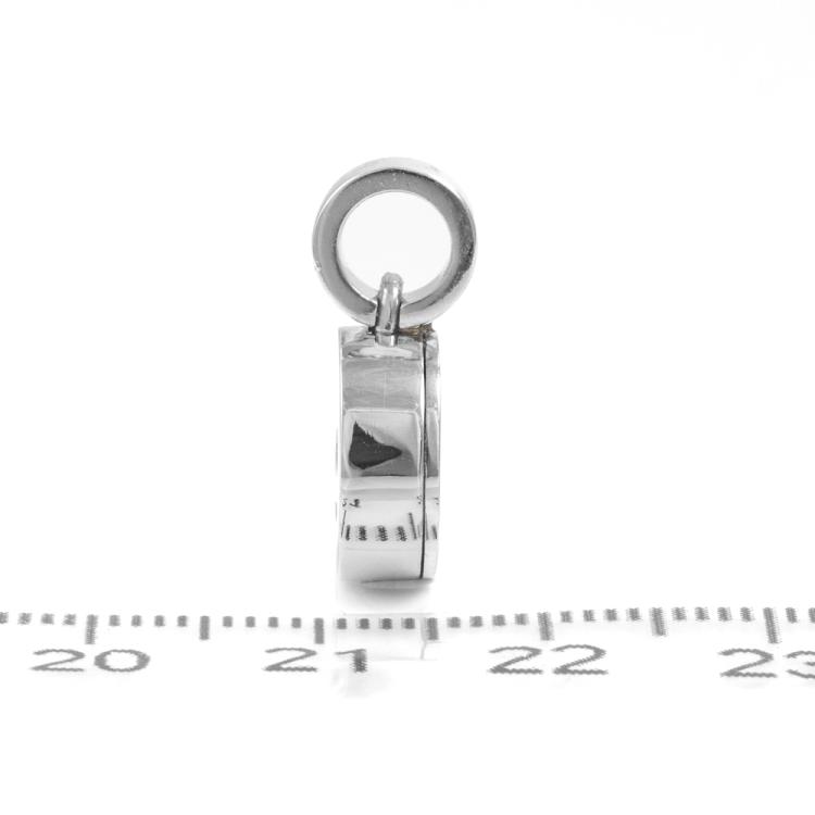 Diamond pendant with a floating Natural Diamond of 0.03ct. 18ct white gold. No chain provided. Size 11.4mm x 19mm. Weight: 4.8g. (As new, note slight wear marks due to being display stock).