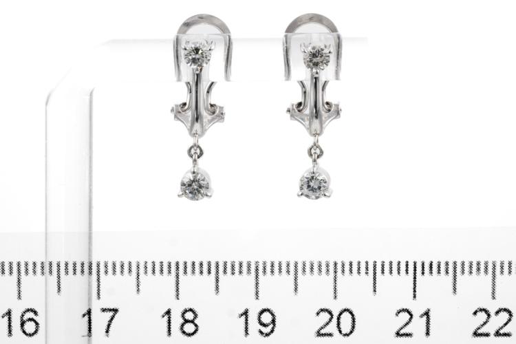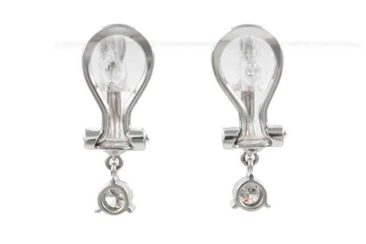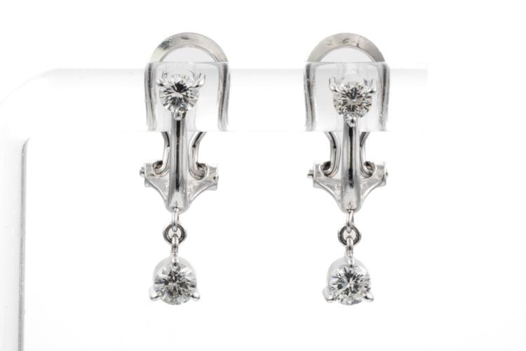 Diamond clip-on earrings (for pierced ears) with 4 round Natural Diamonds totalling 0.32cts (Estimated grading: I-J SI-P1). 18ct white gold. Weight: 3.1g. (Pre-owned)