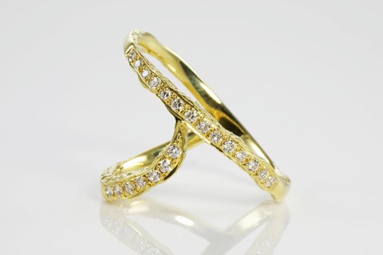 Diamond ring with round Natural Diamonds totalling 0.35cts (Estimated grading: H SI). 18ct yellow gold. Ring size U - Ring resizing is not recommended. Weight: 7.5g (Pre-owned)