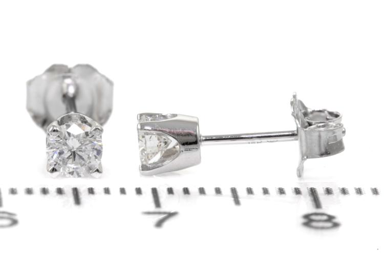 Diamond stud earrings with 2 round natural Diamonds totalling 0.37cts (Estimated grading: G P1). 18ct white gold. Weight: 1.0g. (New)^
