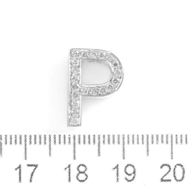 Diamond "P" design pendant with 20 round Natural Diamonds totalling approximately 0.38cts (Estimated grading: G-H SI). 18ct white gold. Size 16mm x 11.5mm. No chain provided. Weight: 3.4g. (As new)