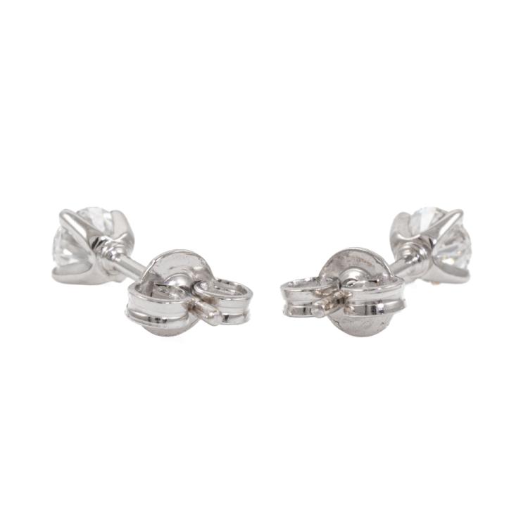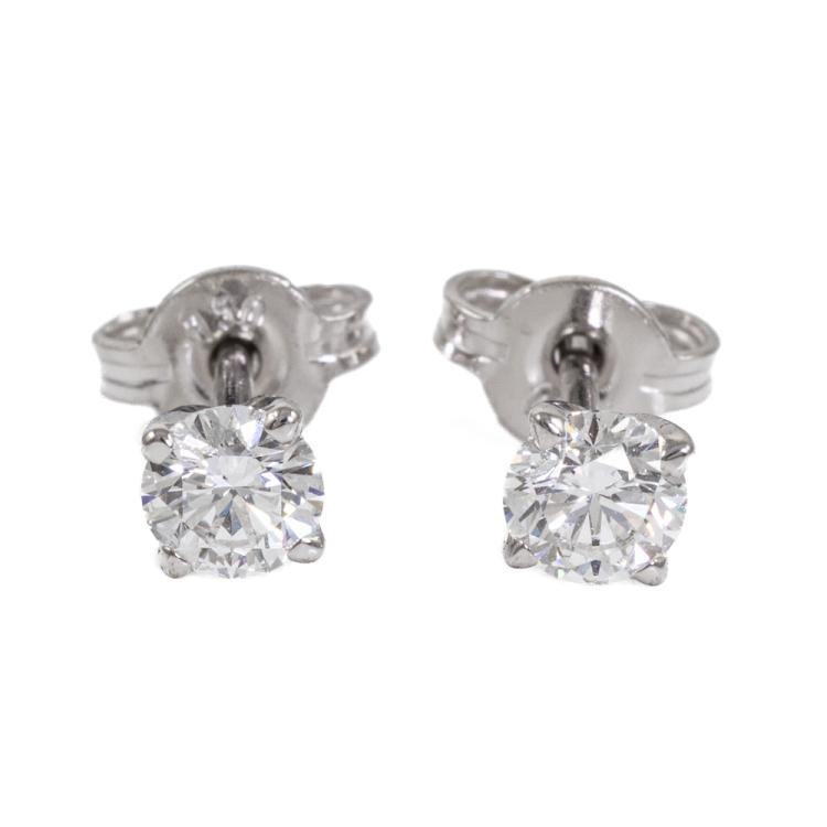 Diamond stud earrings with 2 round Natural Diamonds totalling approximately 0.50ct (Estimated grading: G-H VS-SI). 18ct white gold. Weight: 0.9g. (Pre-owned)