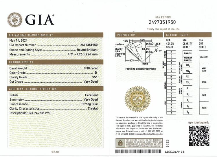 Diamond stud earrings with 2 round brilliant cut natural Diamonds totalling 0.60ct (both with GIA Summary Reports both graded as D VS1 #2497351950, 6481912320