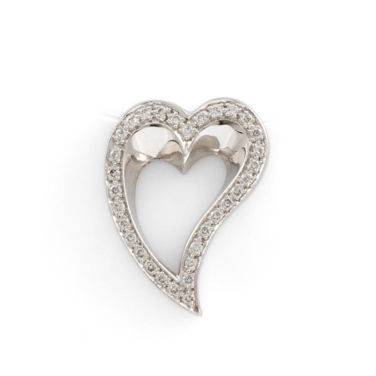 Heart design pendant with round Natural Diamonds totalling approximately 0.64cts (Estimated grading: G VS). 18ct white gold. No chain provided. Weight: 7.2g. (Pre-owned)