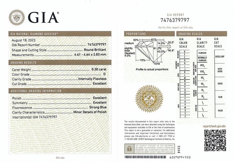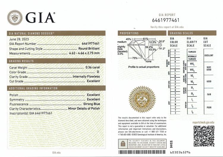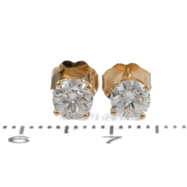 Diamond stud earrings with 2 round brilliant cut Natural Diamonds totalling 0.74ct (with GIA Summary Reports graded as D Internally Flawless #6461977461, 7476379797). 18ct yellow gold. Weight: 1.2g. (New)