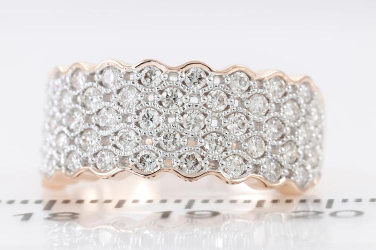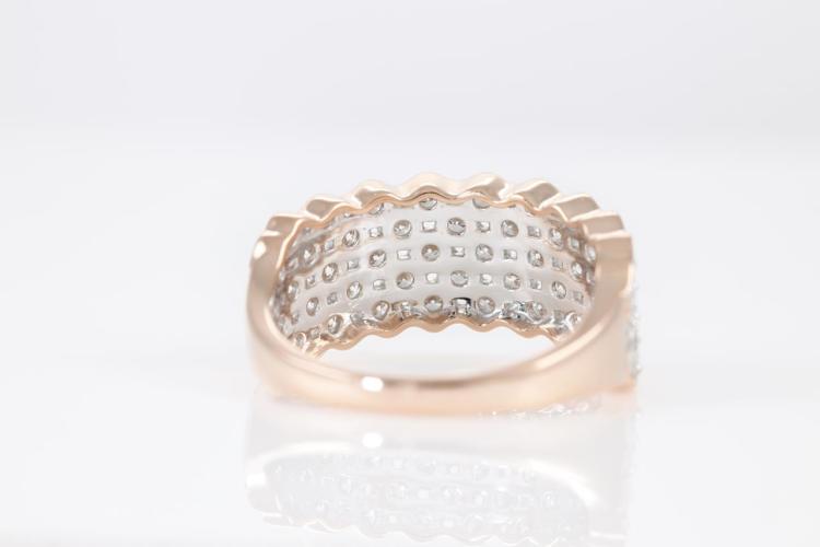Diamond dress ring with round Natural Diamonds totalling 0.80cts (Estimated grading: H SI). 14ct rose and white gold. Size: M1/2. Weight: 4.1g. (New)