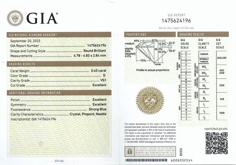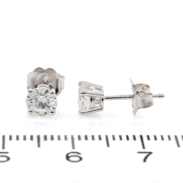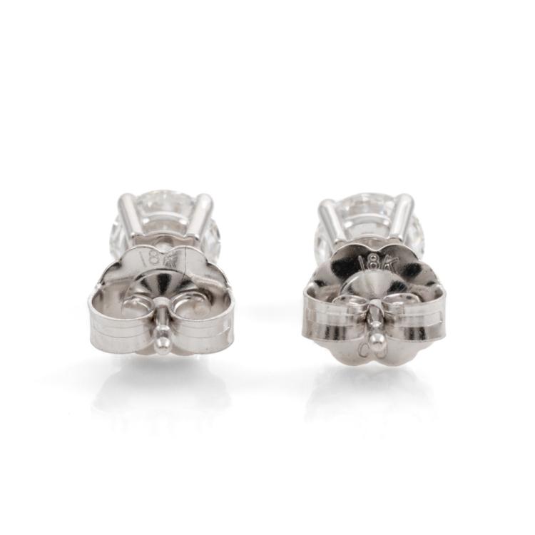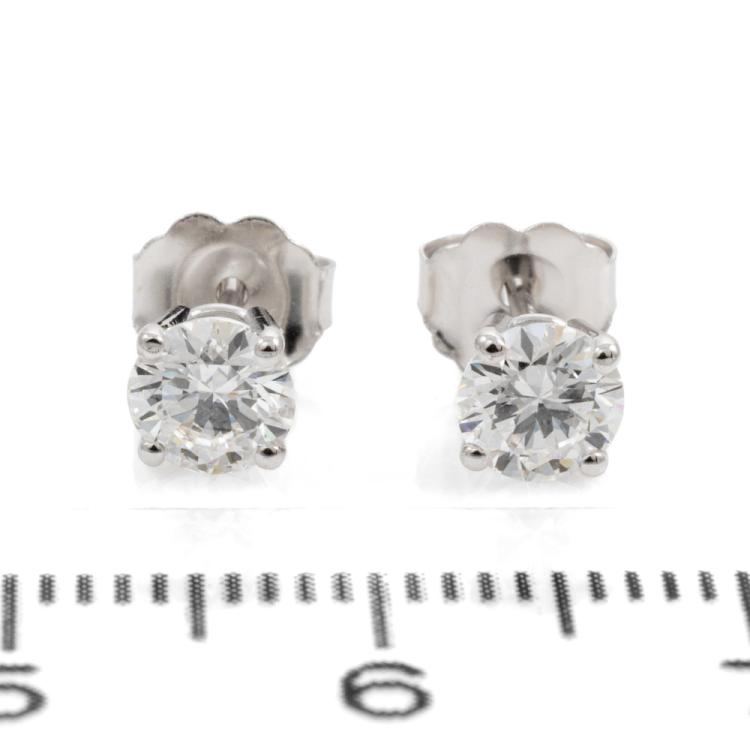 Diamond stud earrings with 2 round brilliant cut Natural Diamonds totalling 0.80cts (with GIA Summary Reports graded as D VS1 #6482389691, 1475624196). 18ct white gold. Weight: 0.9g. (New)