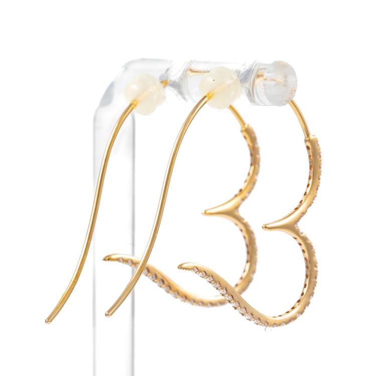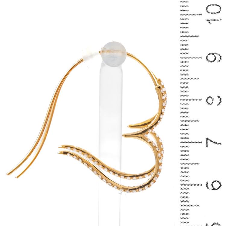Diamond heart shape earrings with round Natural Diamonds totalling 0.82cts (Estimated grading: H-I SI). 18ct yellow gold with silicon backs. Weight: 3.0g. (Pre-owned)