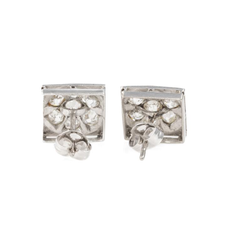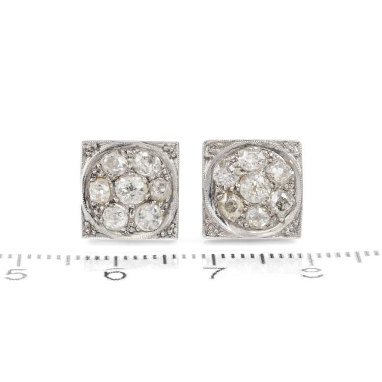 Diamond dress earrings with Old European Cut Natural Diamonds totalling approximately 0.84cts (Estimated grading: J-K SI-P1). 18ct white gold. Size: 10.5mm x 10.5mm. Weight: 3.0g. (Pre-owned)
