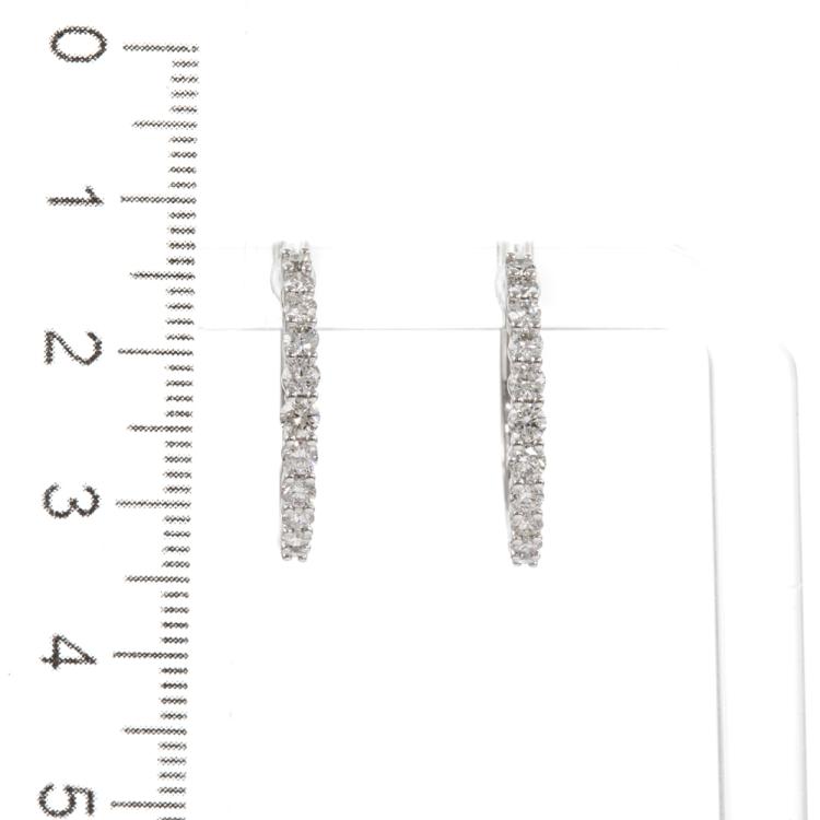 Diamond half hoop earrings with 22 round Natural Diamonds totalling 0.99cts (Estimated grading: H SI). 14ct white gold. Weight: 3.2g. (New).