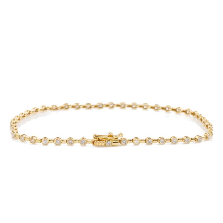 Diamond bracelet with round natural Diamonds totalling 1.00cts (Estimated grading: I-J SI-P1). 18ct yellow gold. Length: 18cm. Weight: 3.4g. (Pre-owned)