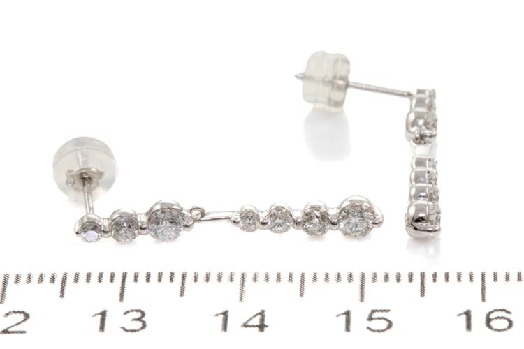 Diamond earrings with Natural Diamonds totalling 1.00cts (Estimated grading: G SI). Platinum - 900 with platinum & silicon backs. Length: 26.0mm. Weight: 3.0g. (Pre-owned)