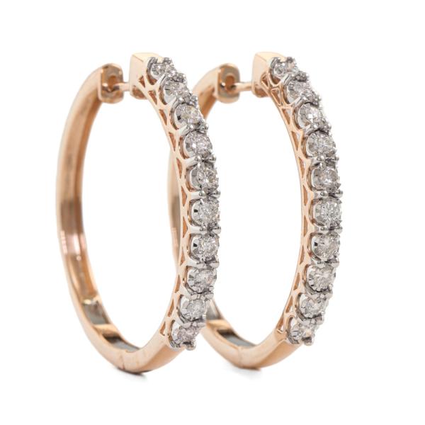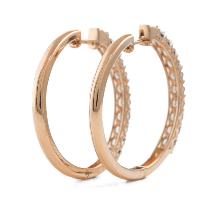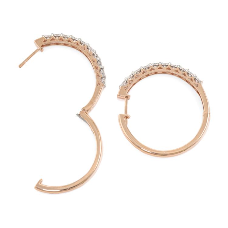 Diamond hoop earrings with 20 round Natural Diamonds totalling 1.00ct (Estimated grading: H SI). 14ct rose gold. Width of hoop: 3.5cm. Weight: 11.1g. (New).