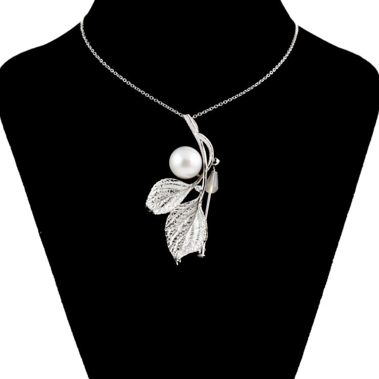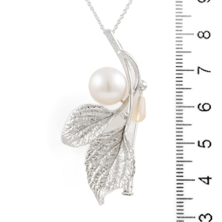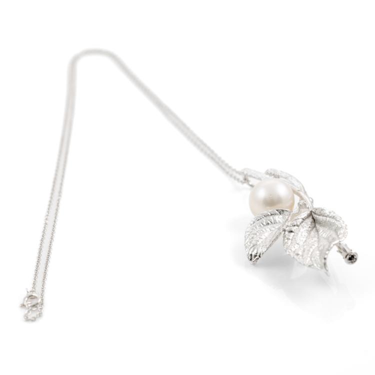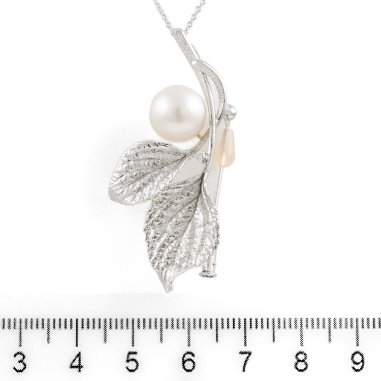 Pearl and Diamond brooch/pendant with South Sea Pearl of 10.3mm and round Natural Diamonds totalling 0.02cts. 14ct white gold with 40cm 14ct white gold chain. Weight: 9.0g. (Pre-owned)
