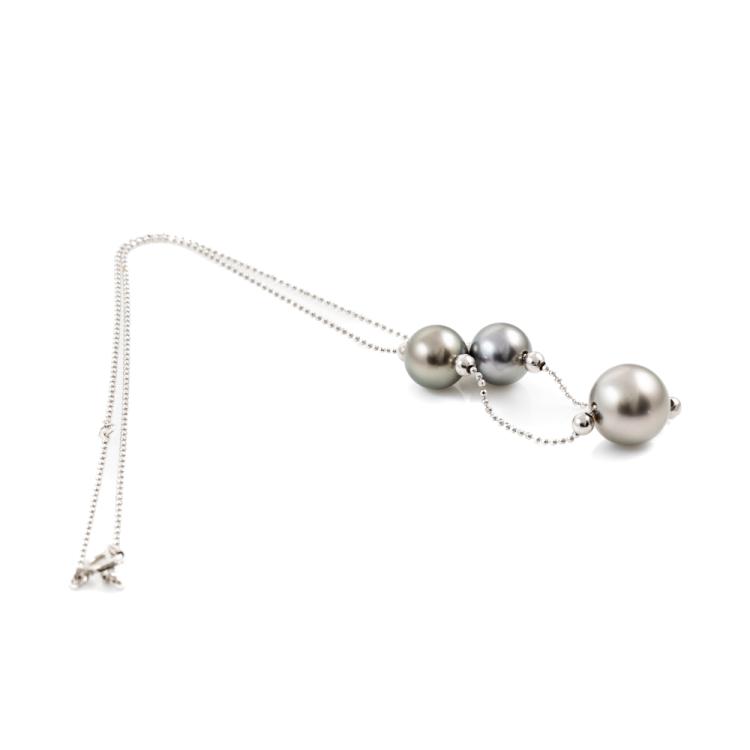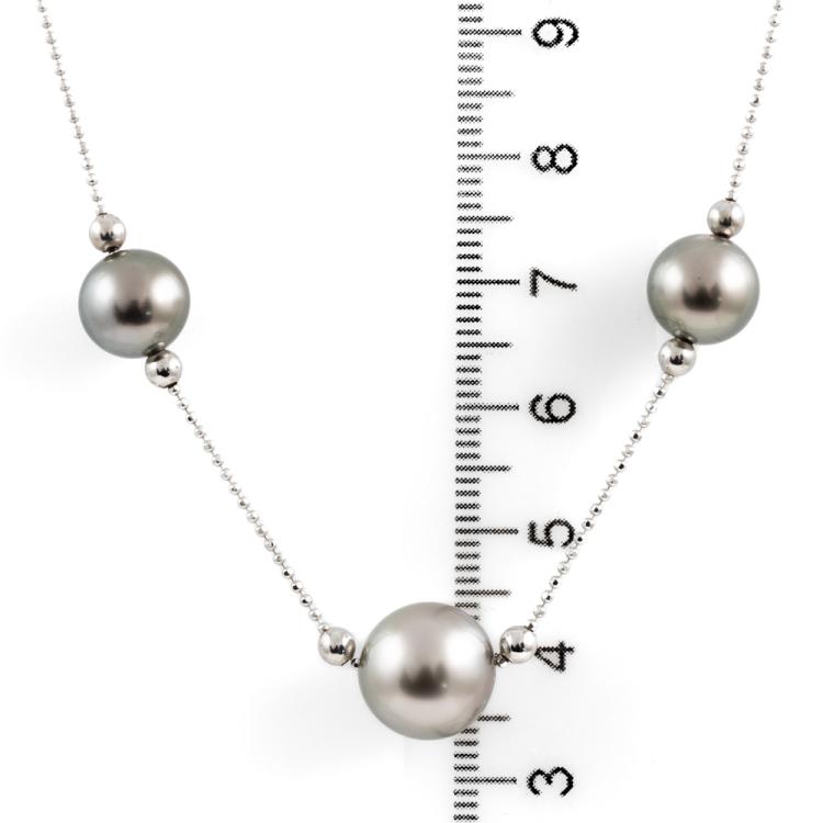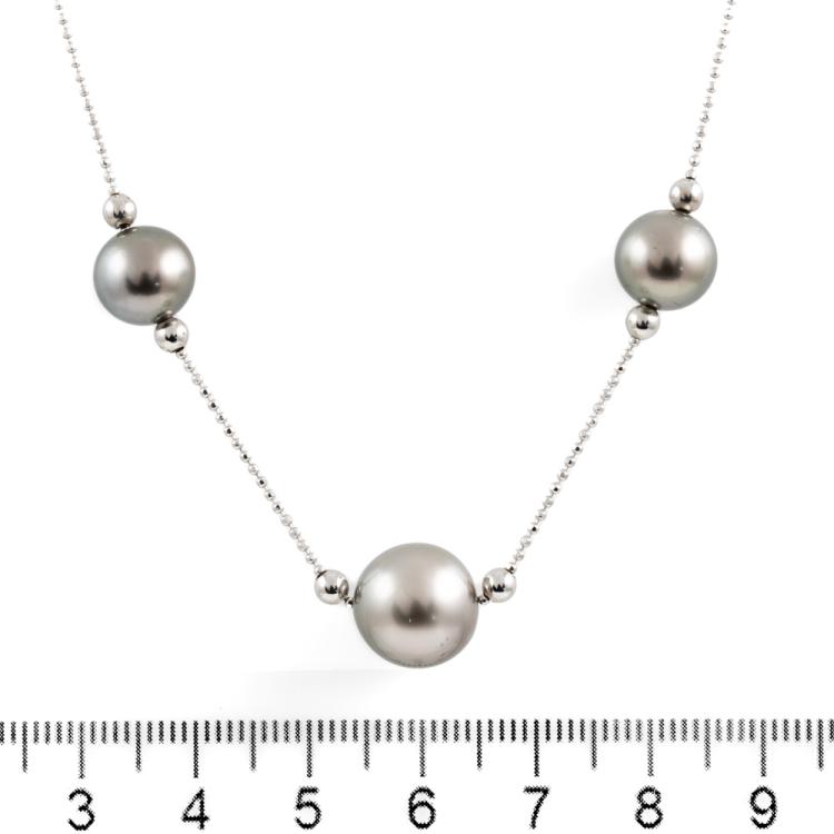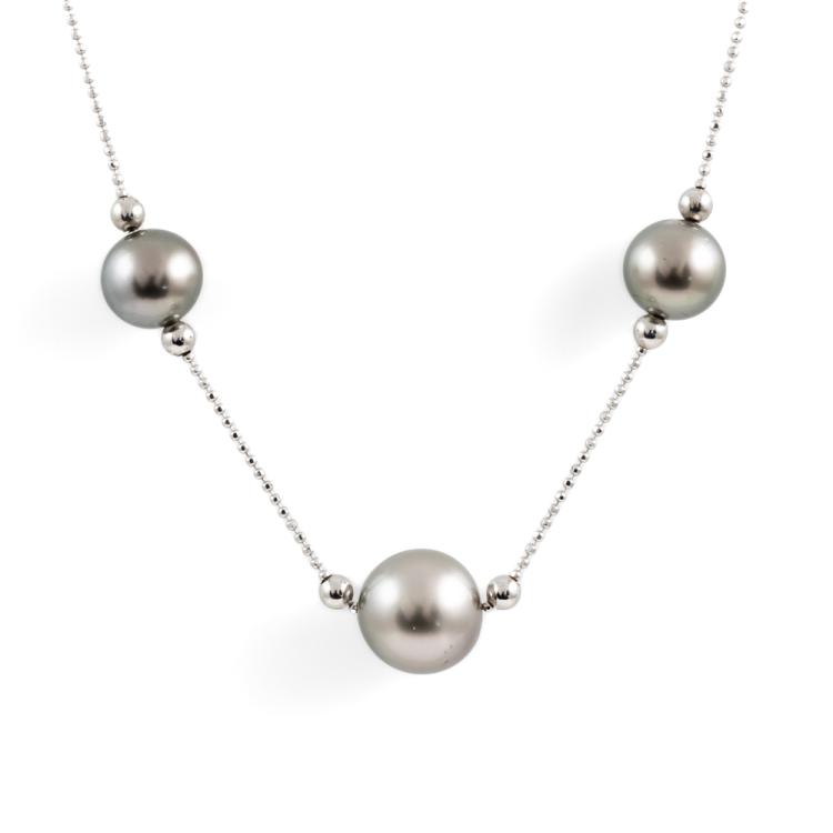 Pearl necklace with 3 Tahitian Pearl of 10.9mm-8.7mm. 18ct white gold. Length 40cm. Weight: 5.7g. (Pre-owned)