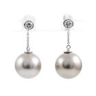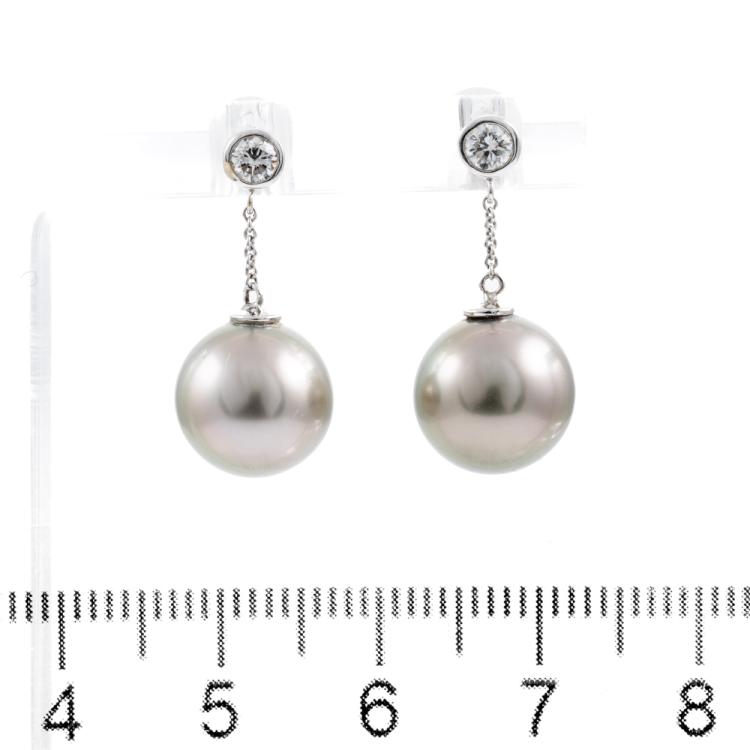 Pearl and Diamond earrings with 2 Tahitian Pearls of 10mm and round Natural Diamonds totalling approximately 0.20cts. 18ct white gold with 18ct white gold & silicon backs. Weight: 4.0g. (Pre-owned).
