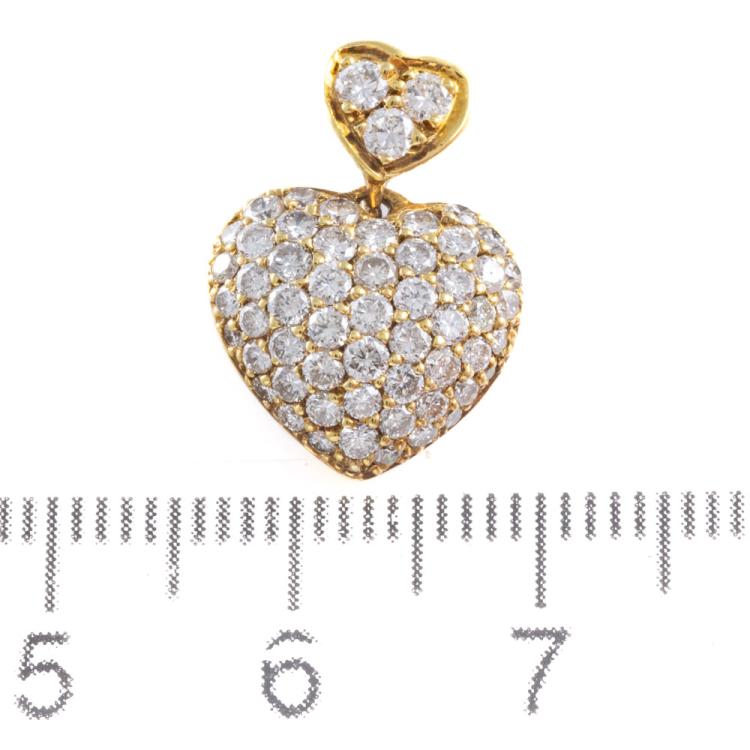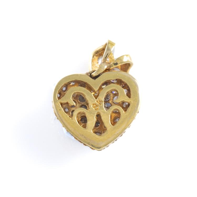 Heart design pendant with round Natural Diamonds totalling 1.20cts (Estimated grading: G-H SI). 18ct yellow gold. Width: 13.1mm. No chain provided. Weight: 2.7g. (Pre-owned)