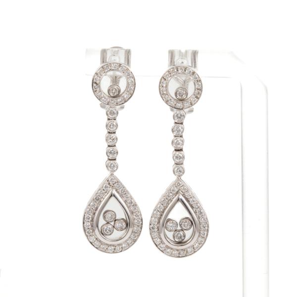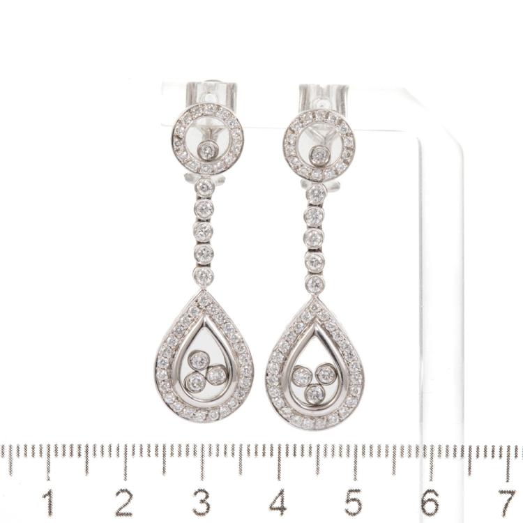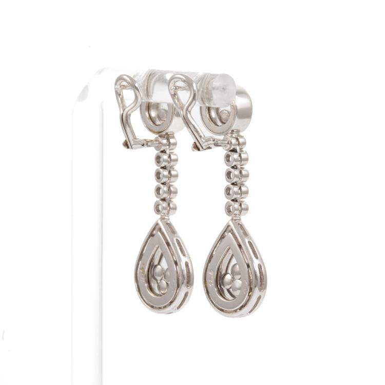 Diamond drop clip-on earrings (for pierced ears) with 8 round floating Natural Diamonds and remaining round Natural Diamonds totalling approximately 1.24cts (Estimated grading: H-I SI). 18ct white gold. Drop length: 4.2cm. Weight 17.3g. (As new)