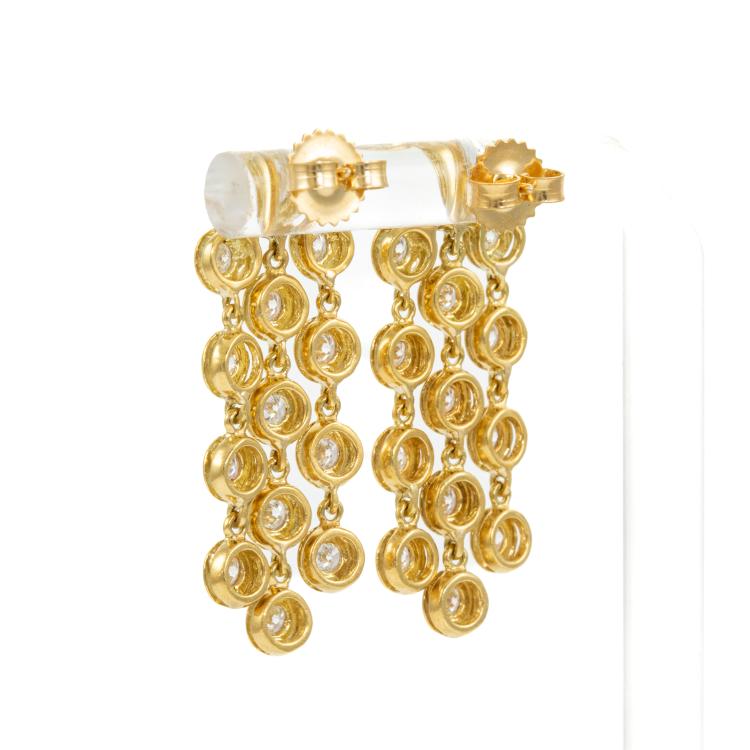 Diamond chandelier earrings with round Natural Diamonds totalling approximately 1.30cts (Estimated grading: H-I SI). 18ct yellow gold. Length: 35.0mm. Weight: 9.5g. (Pre-Owned)
