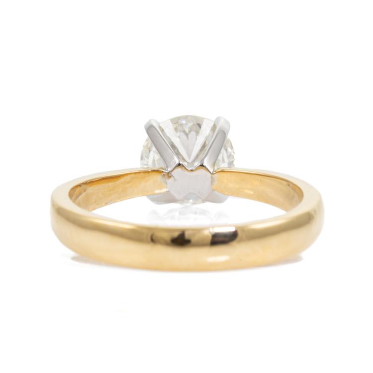 Diamond solitaire ring with round brilliant cut Natural Diamond of 1.35cts (GSL Diamond Report graded as: J VS2 #AA68827). 18ct yellow and white gold. Ring size N. Band width 3.3mm - 2.1mm. Weight: 4.7g.(New)