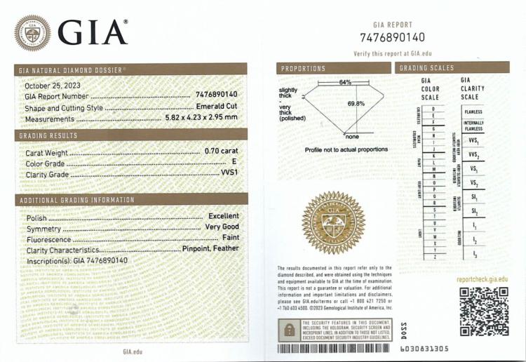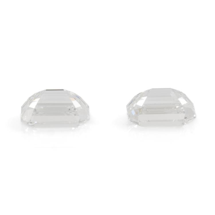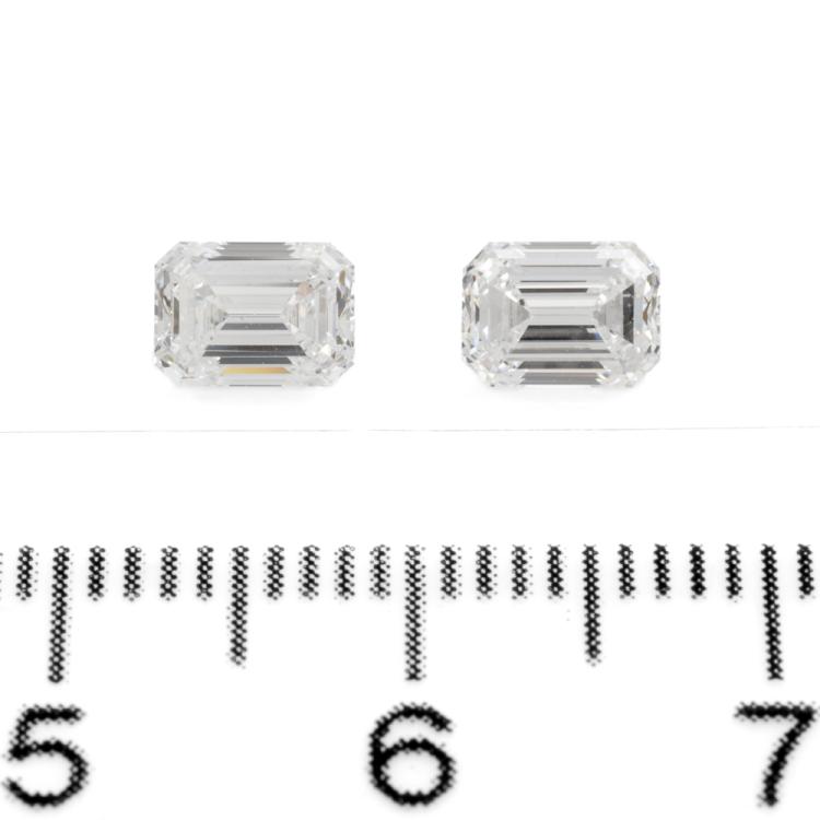A pair of loose emerald cut Natural Diamonds totalling 1.40ct (both with GIA Summary Reports graded as E VVS1 & E VVS2 #7476890140, 7471984569