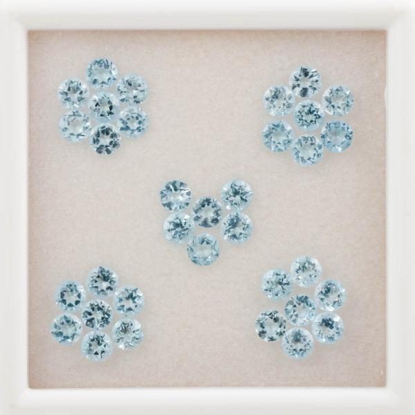 A loose parcel of 34 round blue Natural Topaz totalling 14.10ct. Size approximately 4.5mm. (As new)