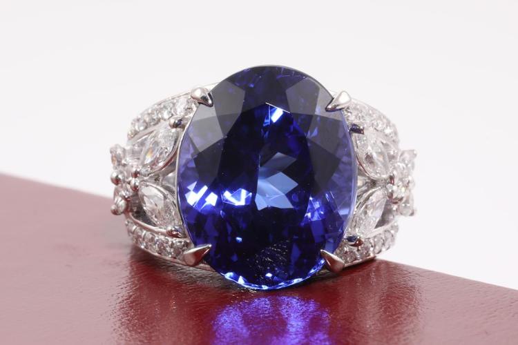 16.48ct Oval Tanzanite and Diamond Ring