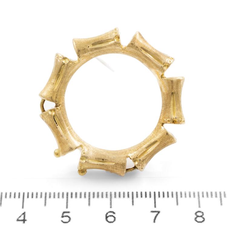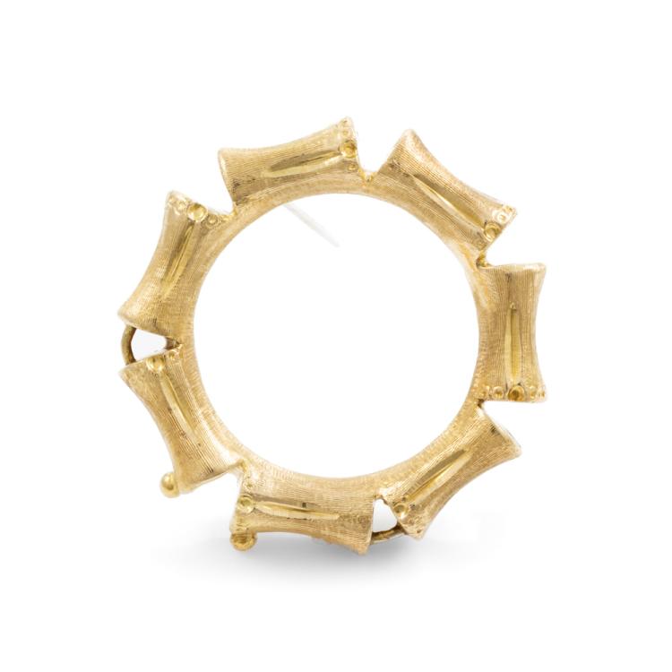 18ct yellow gold hollow brooch. Width: 3.4cm. Weight: 7.1g. (Pre-owned)