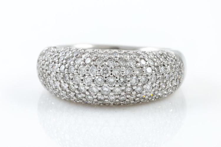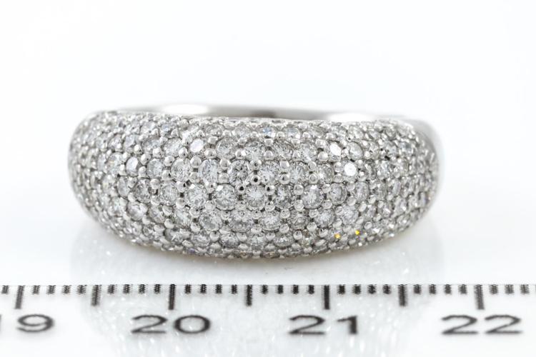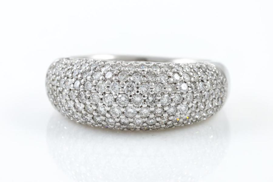 Diamond dress ring with round Natural Diamonds totalling 2.00ct (Estimated grading: G-H SI). Platinum 900. Ring size: R - ring resizing is not recommended. Note: resize mark at back of band. Weight: 15.7g. (Pre-owned)