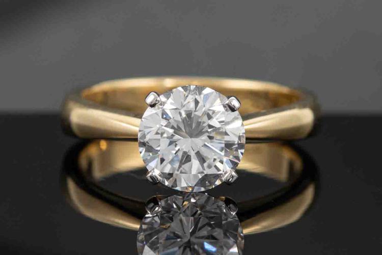 Diamond solitaire ring with round brilliant cut natural Diamond of 2.01ct (with GIA Report graded as D VS1 #7486670919). 18ct yellow and white gold. Ring size: L1/2. Band width: 3.3mm - 1.7mm. Weight: 4.6g. (New)