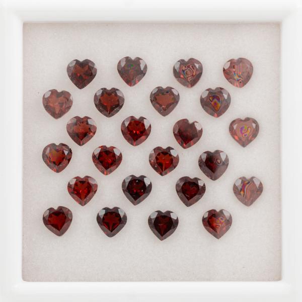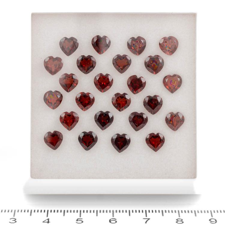 A loose parcel of 24 heart shape Garnets totalling 21.00ct. Measuring approximately 6.0mm x 6.0mm. (As new)