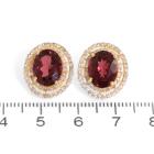 Garnet and Diamond earrings with oval Rhodolite Natural Garnet totalling 3.60ct and round Natural Diamonds totalling 0.40ct (Estimated grading: I-J P1-P2). 18ct yellow gold with 18ct yellow gold & silicon backs. Weight: 4.4g. (Pre-owned)