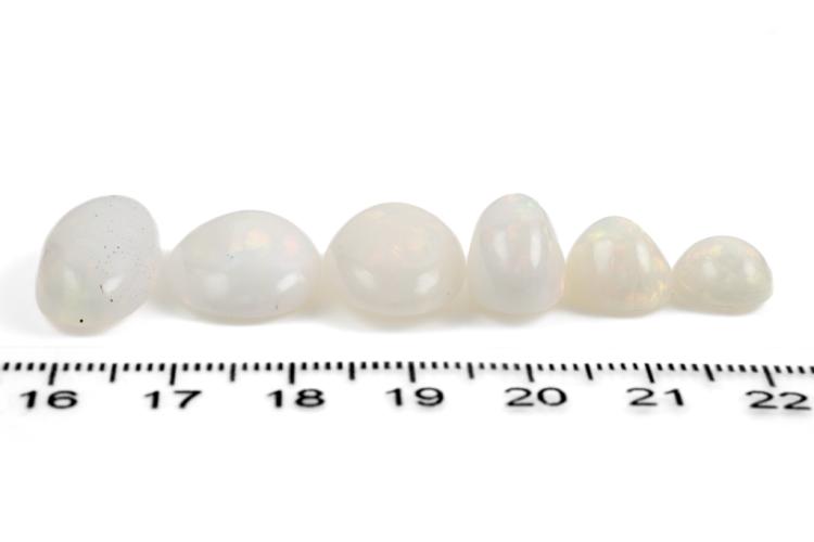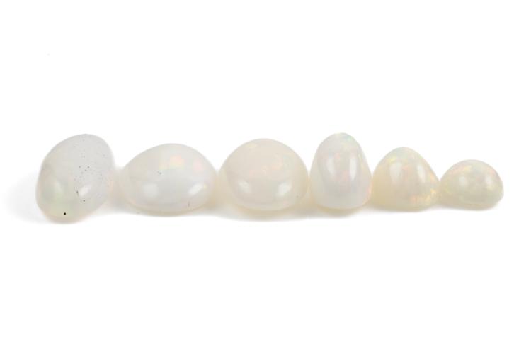 A loose parcel of 6 oval shape cabochon cut White Opals totalling 39.21cts. (As New)