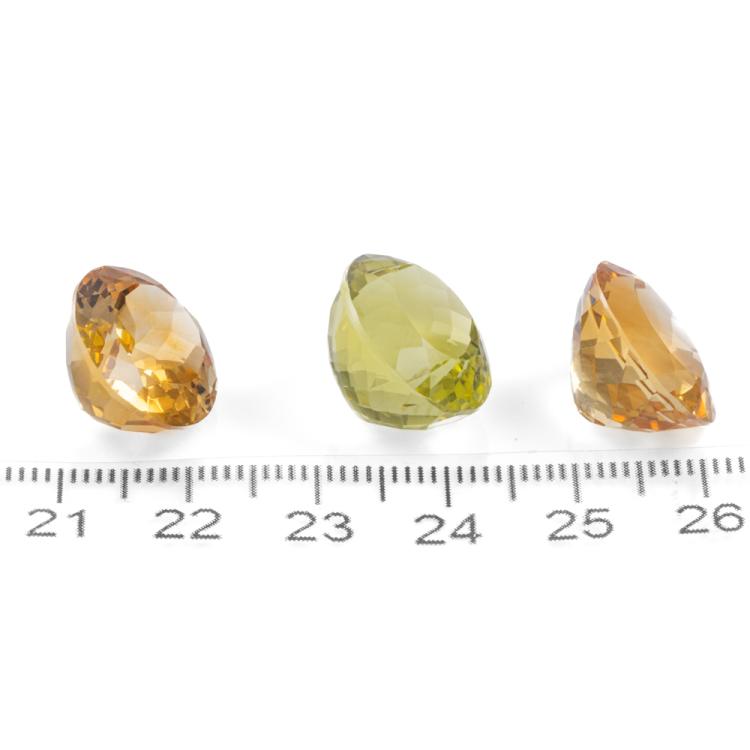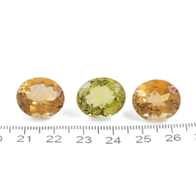 3 Loose gemstones totalling 41.29cts. 1 oval cut Lemon Quartz of 16.08cts (approx. size: 17.1mm x 14.2mm x 11.1mm), and 2 oval shape Citrine totalling 25.21cts (Approx. size; 16.7mm x 14.5mm x 9.8mm). (New)