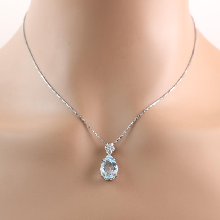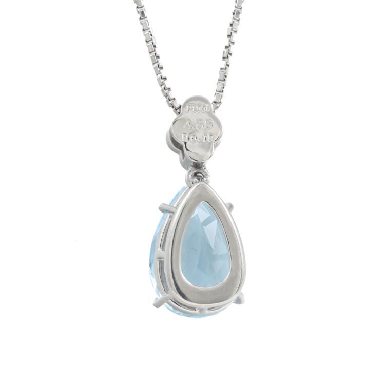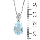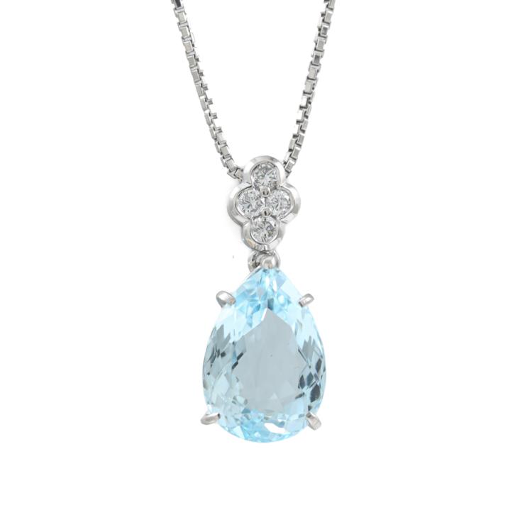 Aquamarine and Diamond pendant with pear shape Natural Aquamarine of 4.55ct and round Natural Diamonds totalling 0.18ct. Platinum - 900 with 36.5cm - 40.5cm Platinum - 850 adjustable chain. Weight: 7.4g. (Pre-owned)