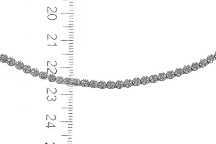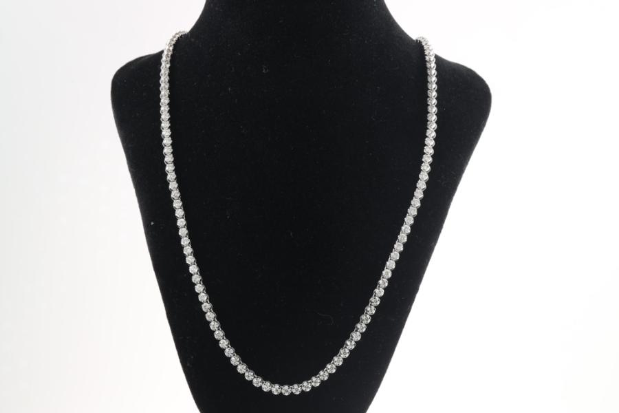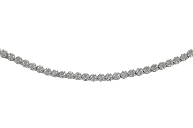 Diamond tennis necklace with 131 round natural Diamonds totalling 4.67ct (Estimated grading: I-J SI). 14ct white gold. Length: 42cm. Weight: 17.0g. With Certificate #417271. (New)