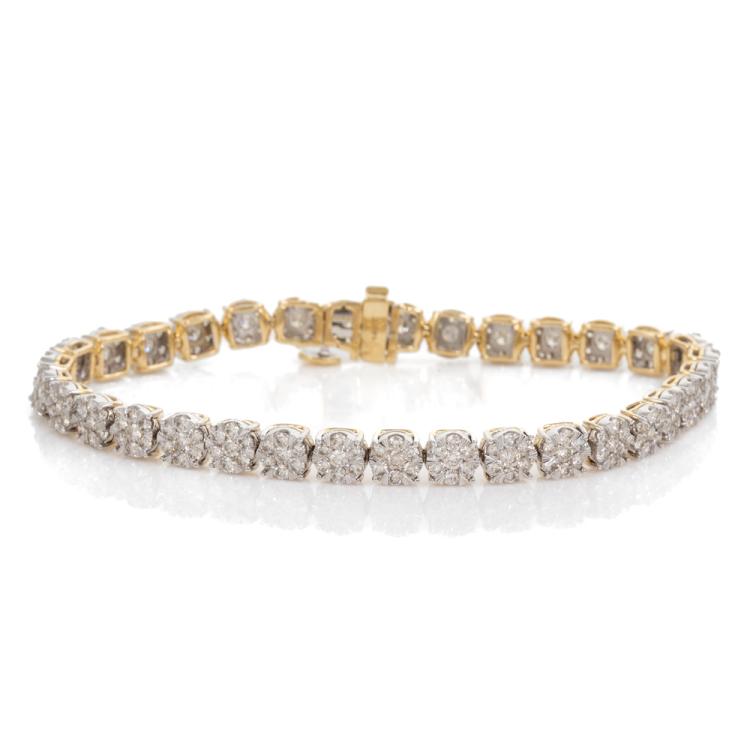 Diamond bracelet with 231 round Natural Diamonds totalling 5.00ct (Estimated grading: I-J SI), invisibly set, each link is set with 7 Diamonds. 14ct yellow and white gold. Length: 18cm. Weight: 15.5g. With Valuation Corticate #418191. (New)