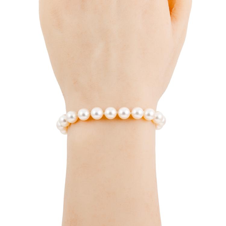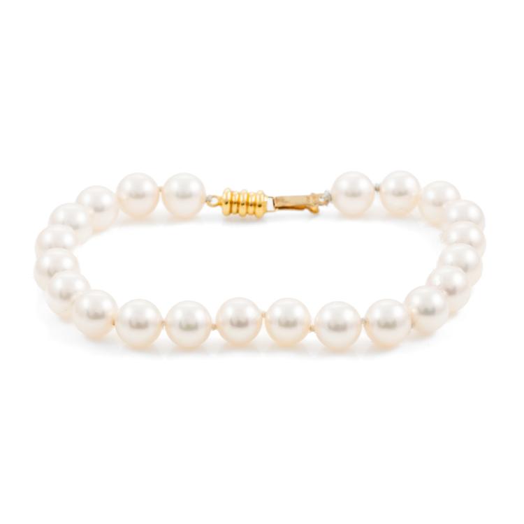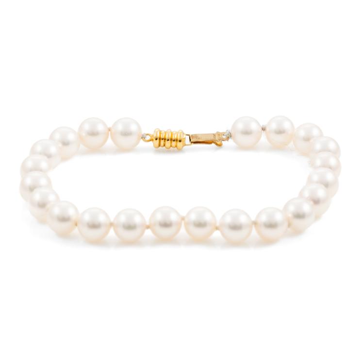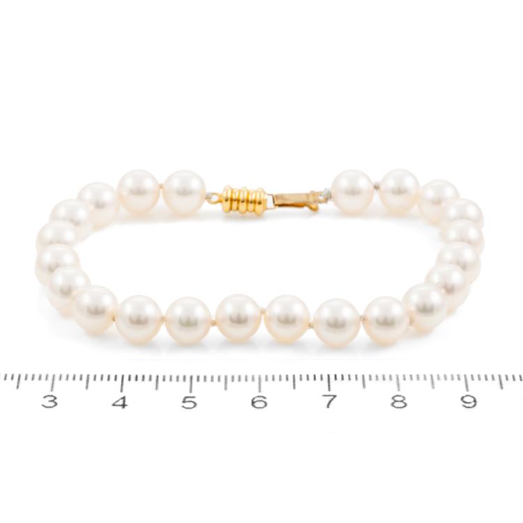 Pearl bracelet with 22 Akoya Pearl of 7.1mm. 18ct yellow gold. Length: 18cm. Weight: 12.4g. (Pre-owned)
